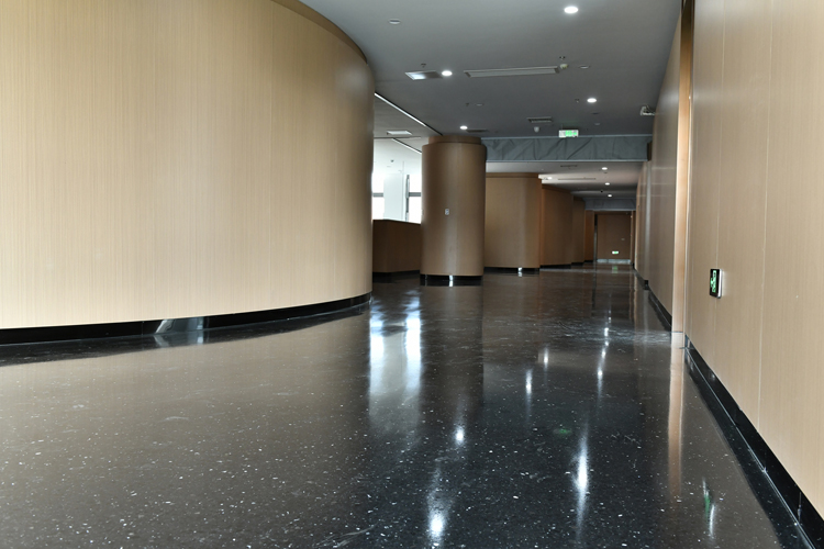 渤海科技大學(xué)9號(hào)樓大廳、走廊,以及體育場(chǎng)館看臺(tái)、走廊、內(nèi)廊等均由秀珀SET 琥珀石藝術(shù)地坪系統(tǒng)打造。